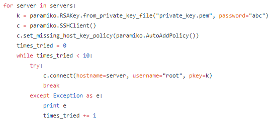 Once I had perfected the list of commands needed for the integration from testing manually on fresh servers, it was time to write a Python script to deploy all the commands to our actual 600 Ubiquiti servers.