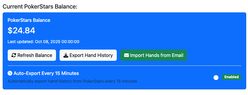 - Auto export PokerStars hands every 15 minutes with enabled/disabled toggle