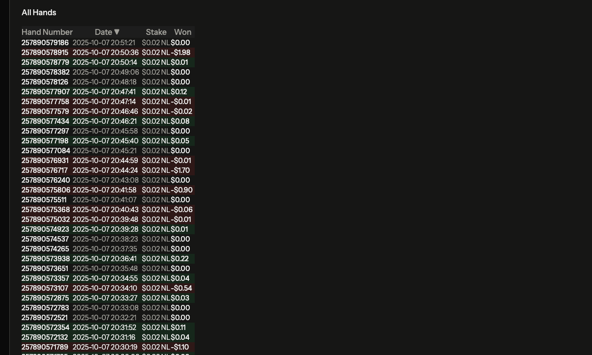 You can view the last 1,000 hands I played here: https://poker.rchase.com