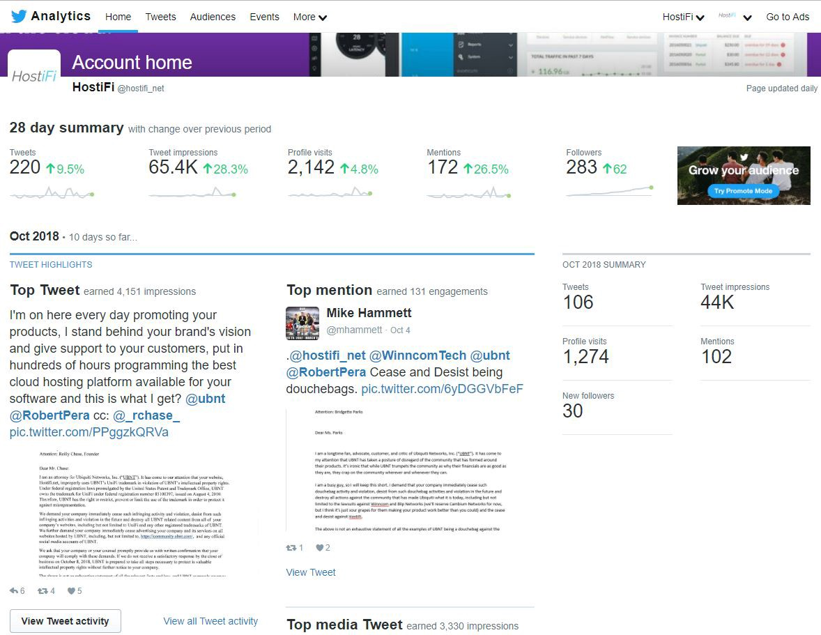Twitter is our #1 marketing platform, driving a significant amount of traffic to the site. The reason we’ve had some initial success with Twitter is because of the way that companies are treated just as normal users. We are able to engage with and follow others. There is no shortage of Ubiquiti related content being posted each day which we are able to easily find and interact with using hashtags.