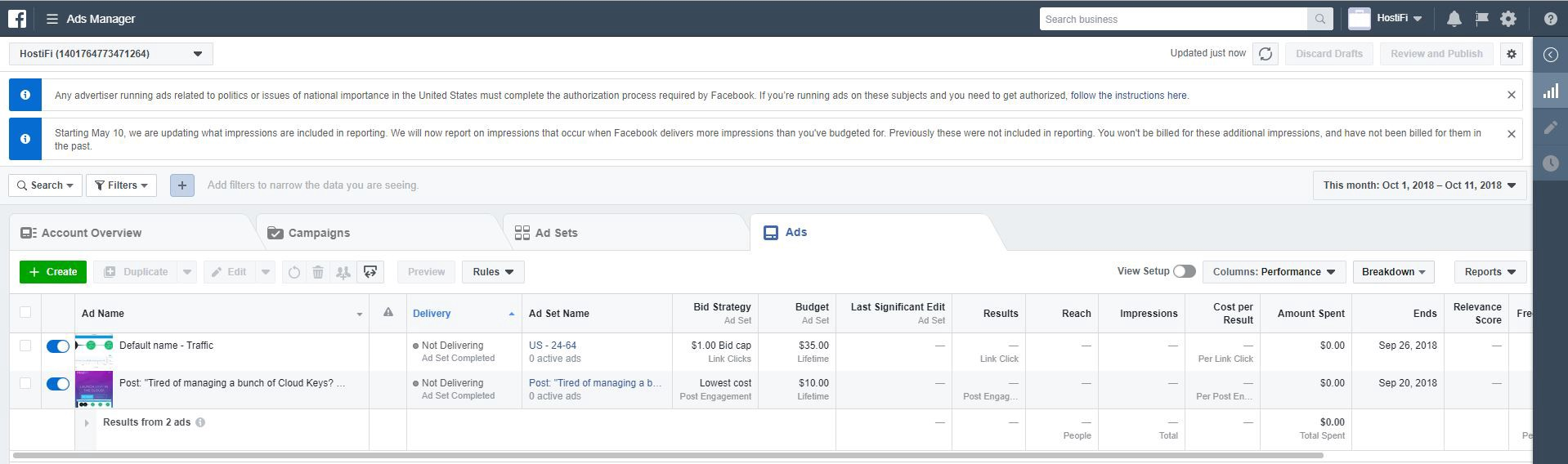 I started off running our first Facebook ad using a $10 credit. It performed really well, and so I ran a second ad paying $35. I was able to get a few customers just with that. Facebook’s ad platform is the best I’ve seen from all the ones I’ve tried out (Twitter, LinkedIn, Google Adwords). It’s amazing how targeted you can make your ads. For HostiFi, I targeted males who were interested in Ubiquiti, between the ages of 24–64, in a handful of selected countries where we already users. I will definitely being doing this again, probably dedicating a small monthly budget to it.